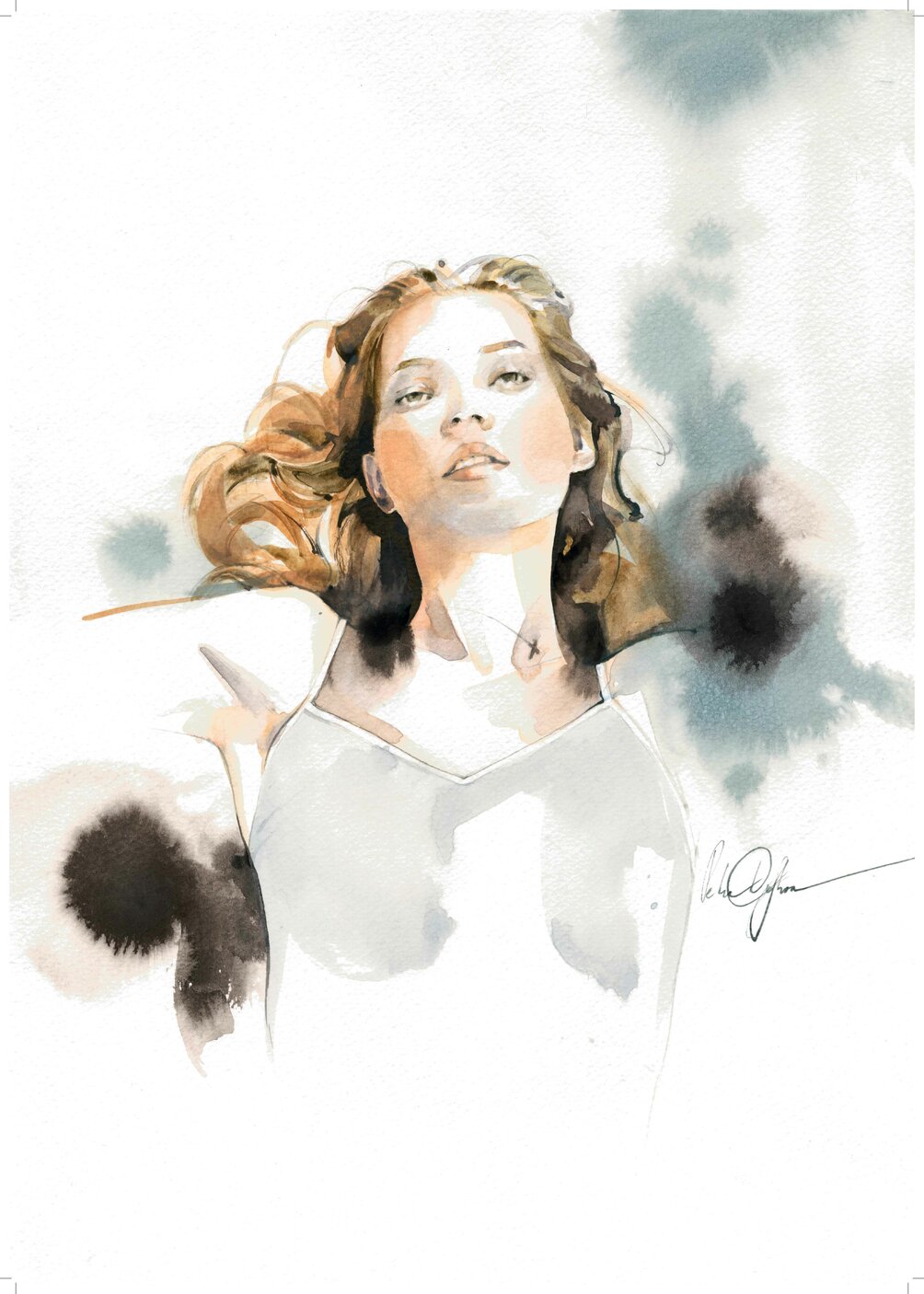 Skizze von Nicole Kidman mit dem „Cotton Seamless“ Hemdchen aus der Filmszene ‘Eyes Wide Shut’ 1999.