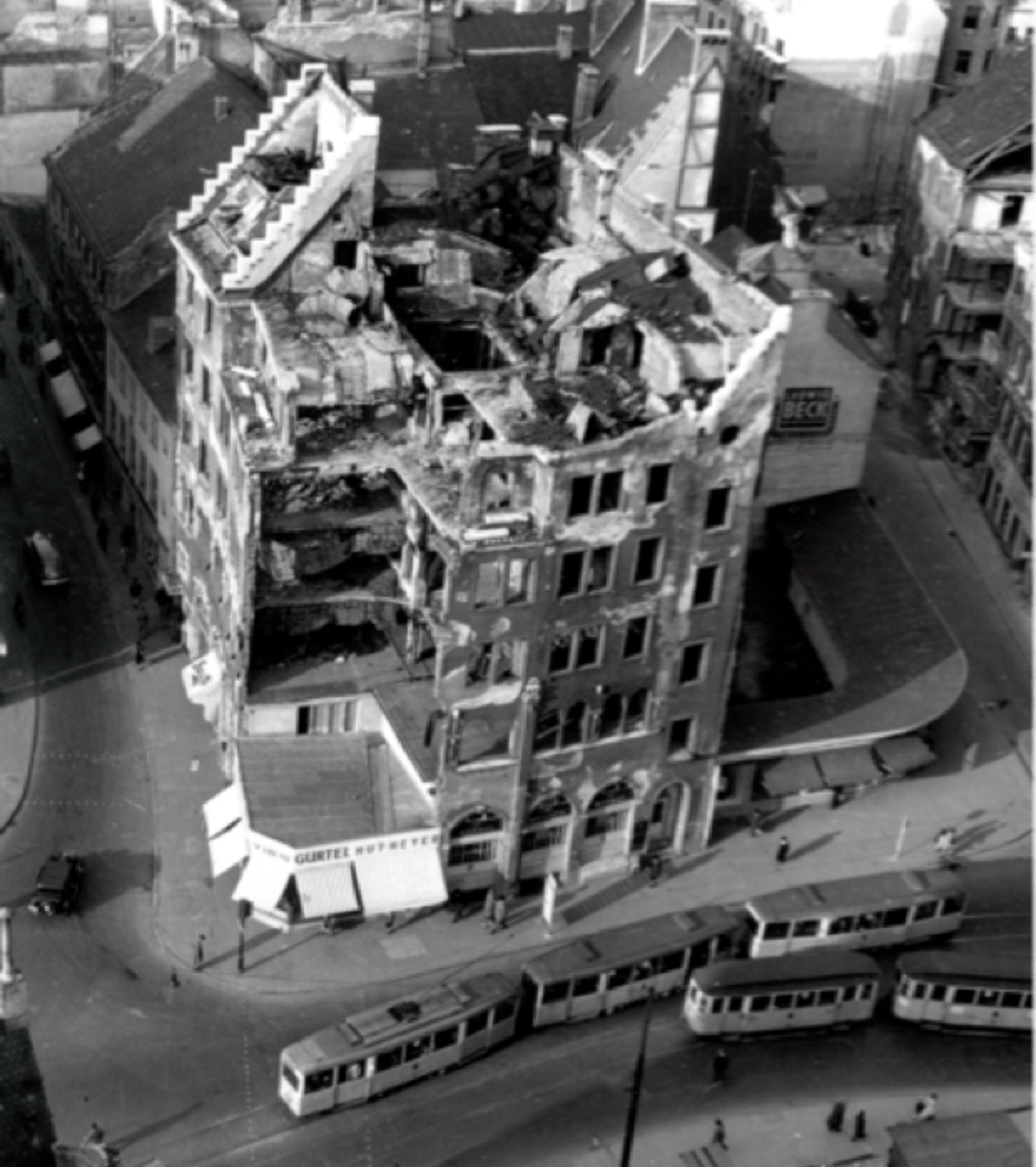Das Geschäftshaus wird im Krieg völlig zerstört.